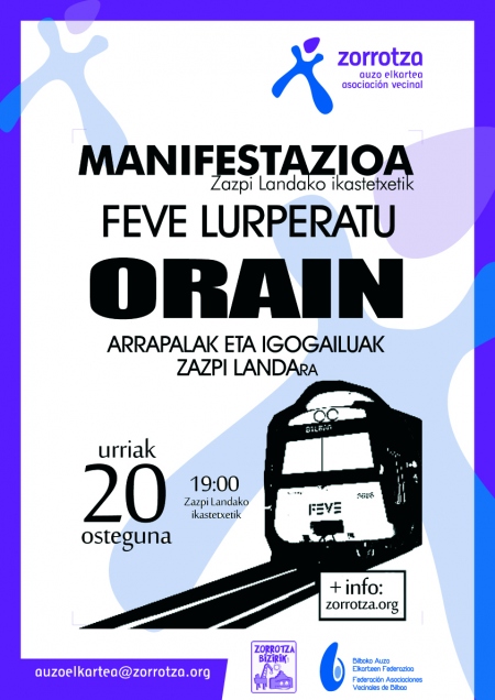 Ostegun honetan egingo duena, bertako Auzo Elkarteak deituta. Arrazoi franko dute Bilboko auzo horretan manifestazioa eta gehiago egiteko, baina kasu honetan FEVEren lurperatzea da arazo nagusia: aspaldian ez dute horren berririk. Arratsaldeko 19:00etan hasiko da ekitaldia, Zorrotza Auzo Elkarteko idazkaria den Karlos Rodriguezek kontatu digunez.
