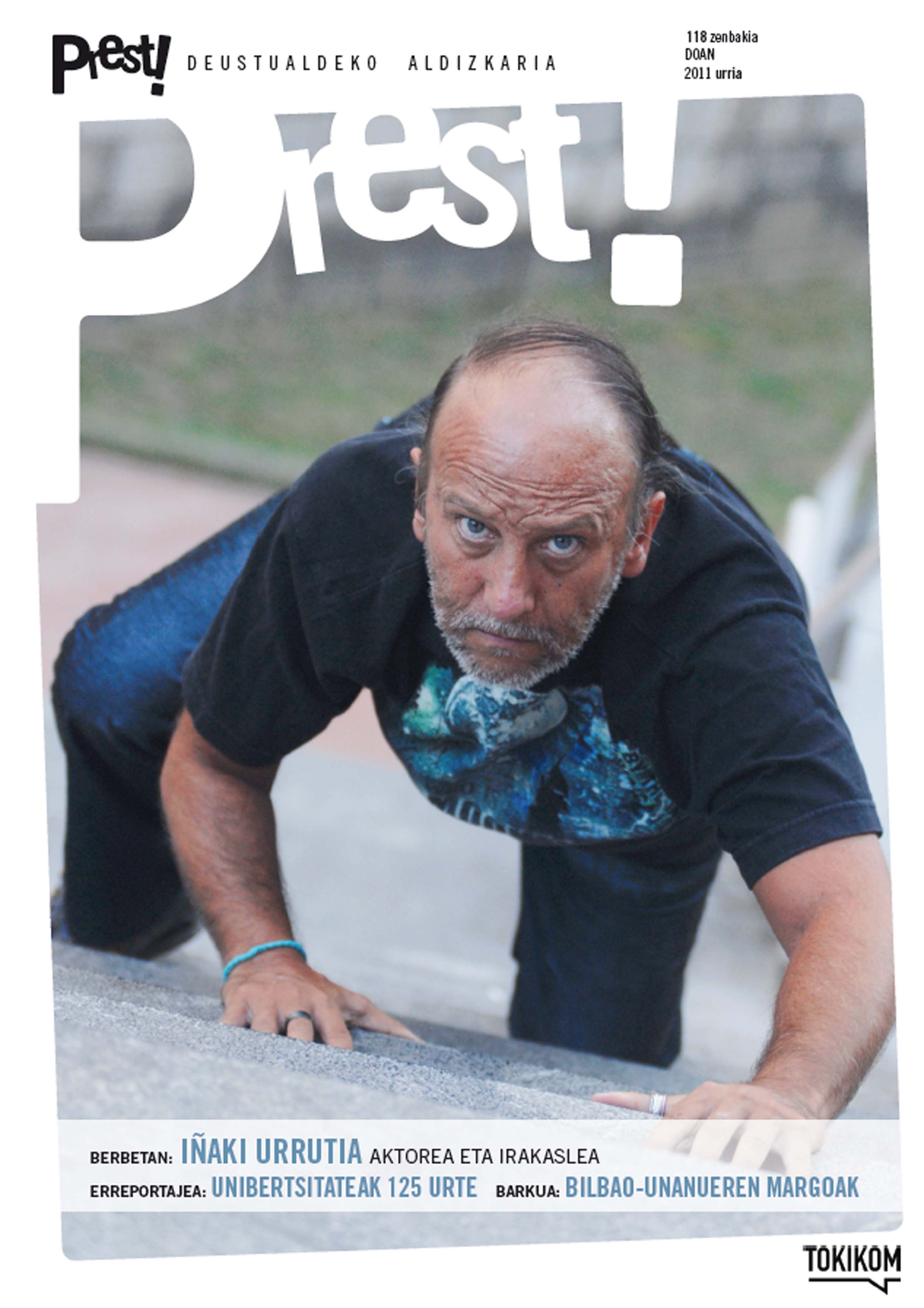 Urriari dagokiona eta azalean Iñaki Urrutia aktore eta irakaslea: berari egin diote elkarrizketa nagusia. Horrez gain, Deustuko Unibertsitateko argilunak, Katamalo edo Bilbao Unanue margolaria izan dituzte aztergai. Eta, Lur Mallea Deustualdeko Prest aldizkariko zuzendariak kontatu digunez, ohiko atalak: Gurera etorriak, Inkesta…