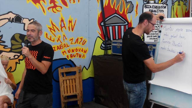 Saio didaktikoa zeukaten gaur Algaran eta, ondoren, marrazkilariek lagunduta, Apolo gogoan egin behar zuten bertso bazkalostea. Izan ere, gure lankide Xabier Lauzurika izan da bertso hitzordu horren bultzatzaile nagusia eta gaurkoan, bideoz 40 bertsolarik igorritako koplez gain, bertsozale eta bertsolariz betetako bazkarian kantatu behar zuten.