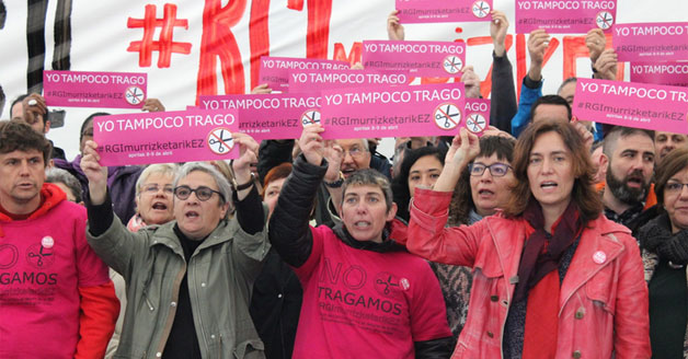Diru Sarrerak Bermatzeko Errentan izan diren murrizten aurka, A25 Emakumeen Plazan zortzi lagunek hasitako mugarik gabeko gose grebaren hamahirugarren eguna dute gaur, hasierako zortzi horietatik hiruk jarraitzen dute aurrera. Egun hauetan hainbat gizarte eragile, sindikatu eta alderdi politikoen babesa izan dute. Gurean izan da Agus Figal ekimeneko kidea. Gizarte eragile eta sindikatu guztiek babestu dute Ez dugu irentsiko, RGI murrizketarik ez ekimena. Goizean agerraldi jendetsuan Eusko Jaurlaritzari eskatu diote gizarte zibilarekin elkarrizketa-bide bat ireki dezala lehenbailehen. “Ez baita justua ezta solidarioa gure jendarteko herritar pobretuak, krisi garai honetan, eskubideak eta baldintzak murriztuta izatea”.