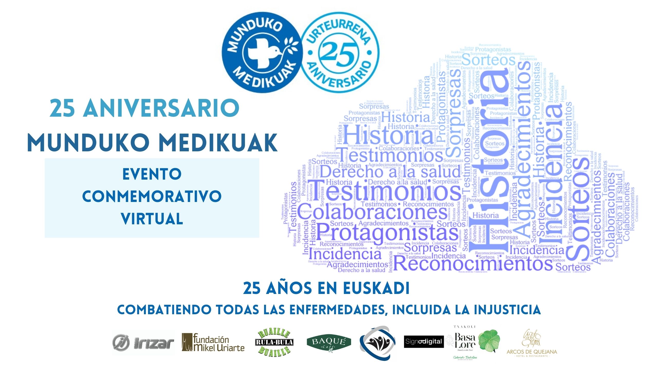 Munduko Medikuak elkarteak 25 urte bete zituen joandako ekainean. Efemeride hori dela eta, euskal GKEak topaketa birtual hibrido bat antolatu du gaur, ostirala, 18:00etan, Facebooken eta Zoomen bidez zuzenean antolatutako jarduera ireki baten bidez. Josu Abad presidentearen hitzetan, “Pertsona guztiek osasunerako sarbidea izatea ospatu ezin dugun arren, 25 urtez Munduko Medikuak erakundeko kide izan garen pertsona guztiek egindako lana aitortu, eskertu eta omendu ahal izango dugu”.