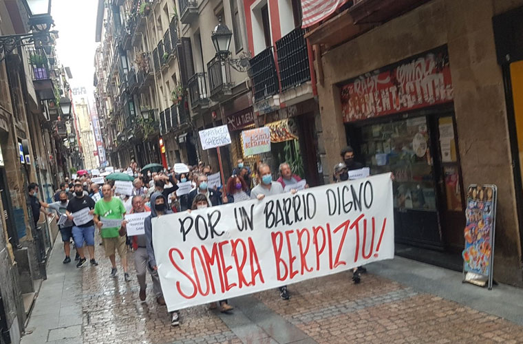 Bihotzean Auzo Elkarteak eta Somerako Bizilagunak kalearen gentrifikazioa eta degradazio prozesua salatzeko manifestazioa deitu dute otsailaren 19rako. Somera 1etik hasiko da, 12.00etan. Bide batez, Udalaren ‘pasibotasuna’ salatu eta auzokideen eskaerak entzun ditzaten eskatzen dute. Datorren larunbatean manifestazioa egingo dute Bilboko Somera kaleko bizilagunek, ‘Somera Berpiztu!’ lelopean, kalearen degradazio egoera eta gentrifikazioa salatzeko. Haien ustez ‘etorkizunik gabeko kale batean bihurtzen ari dira Somera’. Somerako Bizilagunak eta Bihotzean Auzo Elkarteak deitu dute mobilizazioa eta Somera 1etik hasiko da 12.00etan.
