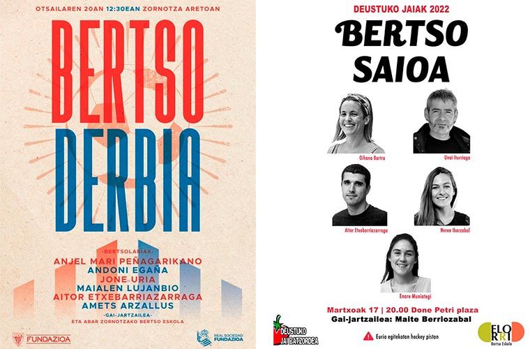 Bertsoaren lubakian, beste saio bat dugu airean Bilbo Hiria irratian. Martxoan eta otsailean izandako saio bi eskaini ditugu, aukeraketa diktatorialean: Zornotzako bertso-derbya eta Deustuko jaietako saioa. Hamaika bertsolari (asko ez, 10+1), bi gai-jartzaileren esanetara, bi saio handitan. Deustu eta Zornotza bertsoz blaitu ziren otsailean eta martxoan; ale preziatuenak dituzue entzungai.