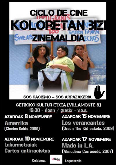 Gaur hasiko da Getxon SOS Arrazakeriak antolatutako Koloretan bizi zinemaldia. Helburua berdintasuna eta aniztasuna sustatzea da eta filmak Getxoko Villamonte Kultur Etxean emango dira, Patxi de la Fuente SOS Arrazakeria erakundeko kideak azaldu duenez. Honen inguruko informazio gehiago sosarrazakeria.org helbidean.