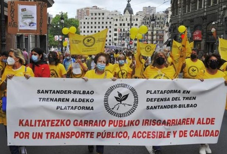 Santander-Bilbao trenbidearen egoera kaotikoa dela salatu du beste behin trenbidearen aldeko plataformak