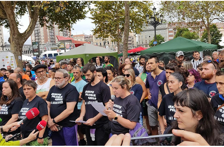 Konpartsek agerraldia egin dute gaur, lehiaketa gastronomikoan zegoen Juan Mari Aburto alkatearen aurrean igande gauean konpartsakide batzuek Bilboko Udaltzaingoaren eskutik pairatutako erasoa salatzeko. Bestelako eraso eta trabak ere aipatu dituzte, tartean larunbatean Arriagan gertatutakoak.Gainera, udalak federazioak jai gunean jarritako pankartak kendu ditu, euskararen eta manteroen aldekoak eta erasoen aurkakoak. […]