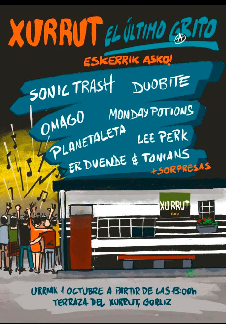 Igande eguerdian, kalean, taberna parean egingo duten jai baten bidez, agur esango dio Gorlizko Xurrut tabernak 38 urteko ibilbide luze bezain oparoari. Xurruten historia gogoratzeko tartea hartu dugu bertako Eneko Alvarezekin, berak urteetan kontzertuak programatzeko ardura izan du eta. 1985ean Rufus eta AHV taldeekin hasi eta gaurdaino, euskal talde ugari igaro dira bertatik eta garaian garaiko musika independentearen isla izan da tabernako sotoa. Izan ere, 90eko hamarkadan Getxo aldean sortutako taldeek berebiziko toki kuttuna izan zuten Xurrut, baina baita Zea Mays, PiLT eta beste euskal talde askok ere. Oso zerrenda luzea osatzen dute, halaber, bere momentuan bertatik igarotako nazioarteko taldeek, Australian Blonde asturiarrak, At The Drive-In amerikarrak edo Portobello Bones frantziarrak kasu. Enekorekin errepasatu dugu Xurruten bizitzan jaso dituen askotariko artisten emanaldien zerrenda luzea, eta urriaren 1ean antolatu duten despedidaz ere jardun dugu. Rocka eta pizzak ikur nagusitzat izan dituen Xurrutek kultura arloan egindako ekarpen handiak ez du sekula instituzioen onarpenik edo laguntzarik jaso, baina igandean jasoko du bere parrokiaren lagunarteko omenaldia, besteak beste, Sonic Trash, Omago, Duobite, Monday Potions, Lee Perk, Planetaleta e Er Duende & Tonians, “gehi sorpresak” izango dituen jaialdi irekian.