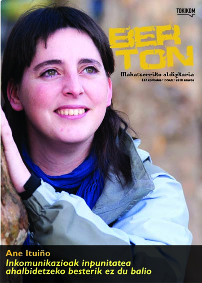 Eta azalean Ane Ituiño TATeko ( Torturaren Aurkako Taldea) kidea: berari egin diote elkarrizketa nagusia. Bi erreportaje ekarri dizkigute Mahatserritik: bata Perretxikoen inguruan eta bestea Eulalia Abaitua argazkilariari buruzkoa. Harpidetza kanpaina ere aipatu du Lur Mallea Berton aldizkariko zuzendariak eta bukatzeko datorren urtarrilaren 6an Santutxun egingo den “6 Izar Krosa” komentatu du.