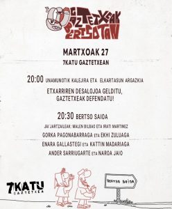 Duela bi aste hasi zen “Gaztetxeak bertsotan” ekimana, lehen kanporaketa izan zuten. 2000 urtetik aurrera jaiotako 24 bertsolari gaztek parte hartu dute binakako sariketan. Zazpi saioa iznago diztuzte. Ostegunean lehen finalerdia izango dute Bilboko 7 katu gaztetxean. Aroa Arrizubieta izan da gurean.