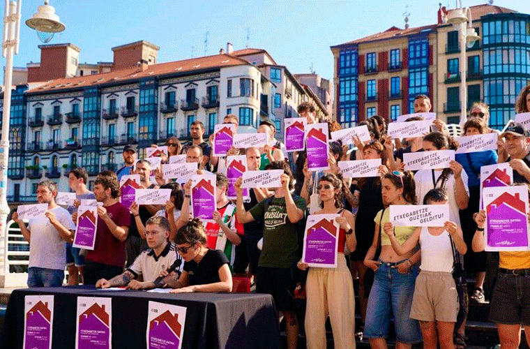 Datozen asteetan bi familia kaleratuak izateko arriskuan daude Bilbon, inolako alternatibarik eskaini gabe kale gorrian gera daitezkeelarik. Egoera salatzeko eta bi familien etxebizitzak defendatzeko deia egin dute gaur Bilboko auzokideek, ohartaraziz halako egoerak geroz eta ohikoagoak direla eta ezin direla normalizatu. AZET etxebizitza sindikatutik adierazi dutenez, “etxegabetzeak dira kapitalismoak eragiten duen indarkeriaren adierazpen gordinenetako bat”, eta egoera are larriagoa bilakatzen da adingabeak tarteko direnean. Kasu honetan, bederatzi haur daude arriskuan, kalean geratzeko mehatxu zuzenarekin. Lehenengo kasuan, datorren ostiralean, ekainaren 27an, Alde Zaharreko Bidebarrieta kalean bizi diren Rosario, Miguel eta haien seme-alabak etxetik kanporatzen saiatzekoak dira. Familiak hiru urte baino gehiago daramatza Alokabideren jabetzako etxebizitza batean bizitzen, eta orain, instituzio publiko bera da alternatibarik eskaini gabe kaleratzea agindu duena. Bigarren kasuan, Tamara eta bere familiak uztailaren 7rako dute kaleratze data ezarrita. Familia honek urteak daramatza egoera horretan, epaile baten erabakiaren zain. Kasu honetan Bizkaiko Foru Aldundiaren tutoretza-erakunde batek agindu du etxebizitza hustea, inolako irtenbiderik proposatu gabe. Auzo-erakundeek azpimarratu dute gizartean errotutako beste oinarrizko eskubide batzuekin alderatuta, “etxebizitza ukatzea ankerkeria hutsa litzateke”. “Ezingo genuke onartu haur bati osasun edo hezkuntza eskubidea ukatzea, eta hala bada, zergatik onartzen dugu familia bat etxerik gabe uztea norbaitek negozioa egiten jarrai dezan?”, galdetu dute.