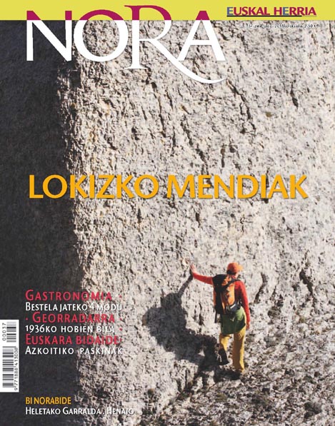 Erreportaje nagusia. Euskara bidaide atalean “Azkoitiako kukua” jorratu dute; Zenbaki ta lurrean “Eguneko menua bestelako denean”; eta Jakin guran “Georradarra Gerra Zibileko hobien bilatzailea”. Horietaz gain Bitakora kaierra, ohiko argazki ederra edo bi txango proposatzen dizkigu Nora aldizkariak. Martxokoan hiriburuetako baserriak aztertuko dituzte Hektor Ortega Nora aldizkariko erredakzio-buruak komentatu digunez.